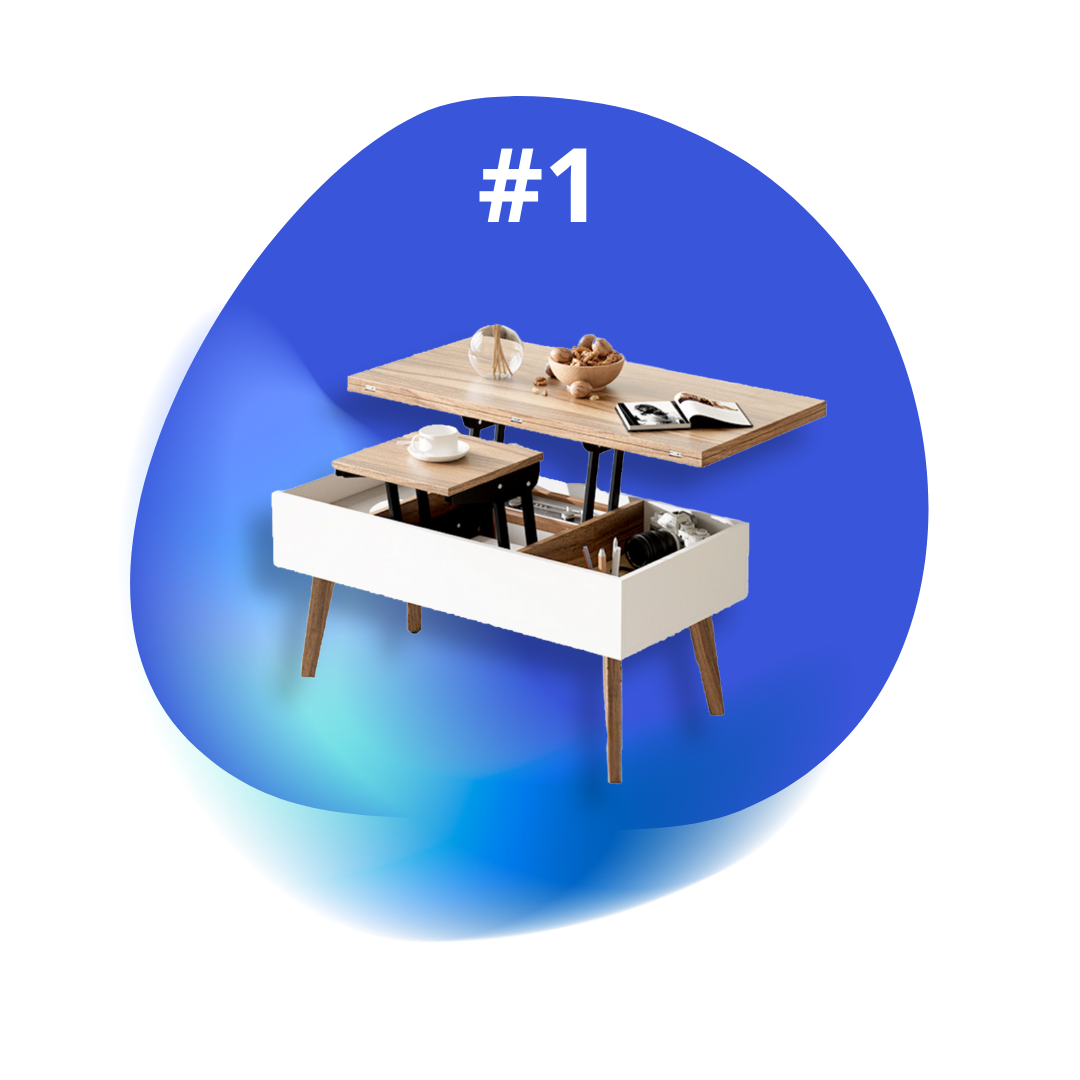 Atlikę išsamią apžvalgą ir palyginę skirtingus stalus, pirmąją vietą skyrėme MONO EasyLift-Double staliukui. Tvirta ir kokybiška šio stalo konstrukcija, dvigubi pakeliami stalviršiai, talpi paslėpta daiktadėžė su dviem stalčiais suteikia erdvei daugiau universalumo. Stalui surinkti užteks 10 minučių, o tylus stalviršių pakėlimo mechanizmas leis paprastą kavos staliuką greitai transformuoti į kokybišką valgomojo stalą ar darbo zoną. Staliukas MONO EasyLift-Double – puikus kainos ir kokybės santykis Jūsų namams.